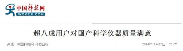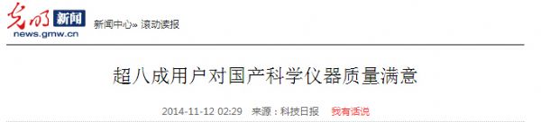 近日,科技日?qǐng)?bào)一則題為《超八成用戶對(duì)國(guó)產(chǎn)科學(xué)儀器質(zhì)量滿意》的新聞被人民網(wǎng)、光明網(wǎng)、中國(guó)日?qǐng)?bào)、中國(guó)經(jīng)濟(jì)網(wǎng)、中國(guó)江蘇網(wǎng)、天津網(wǎng)、和訊科技等知名媒體紛紛轉(zhuǎn)發(fā),引起了社會(huì)各界對(duì)國(guó)產(chǎn)儀器質(zhì)量滿意度的廣泛關(guān)注。