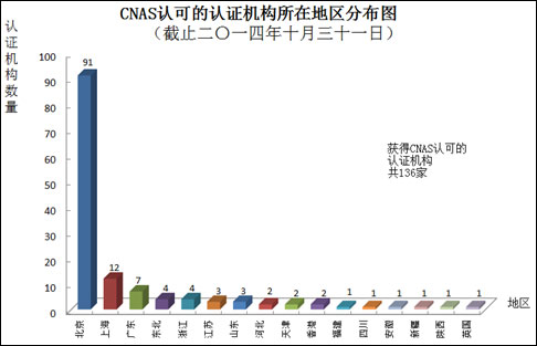 截至2014年10月31日,CNAS認可各類認證機構、實驗室及檢查機構三大門類共計十四個領域的6813家機構,其中,累計認可各類認證機構136家,認證機構領域總計466個,涉及業(yè)務范圍類型9389個;累計認可實驗室6279家,其中檢測實驗室5275家、校準實驗室742家、醫(yī)學實驗室162家、生物安全實驗室57家、標準物質(zhì)生產(chǎn)者9家、能力驗證提供者34家;累計認可檢查機構398家。截至2014年10月31日,累計暫停各類機構的認可資格1053家,其中認證機構38家、實驗室990家、檢查機構25家;累計撤銷各類機構的認可資格441家,其中認證機構24家、實驗室403家、檢查機構14家;累計注銷各類機構的認可資格611家,其中認證機構21家、實驗室557家、檢查機構33家。