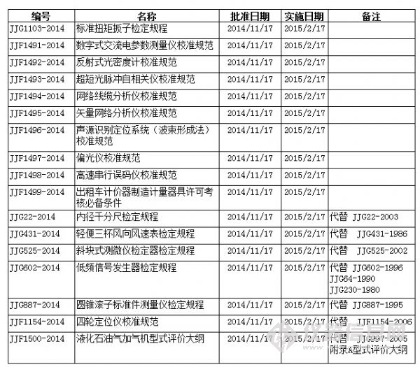 國(guó)家質(zhì)量監(jiān)督檢驗(yàn)檢疫總局日前批準(zhǔn)數(shù)字式交流電參數(shù)測(cè)量?jī)x、反射式光密度計(jì)等17個(gè)儀器儀表國(guó)家校準(zhǔn)規(guī)范,并確定將于2015年2月17日正式實(shí)施。