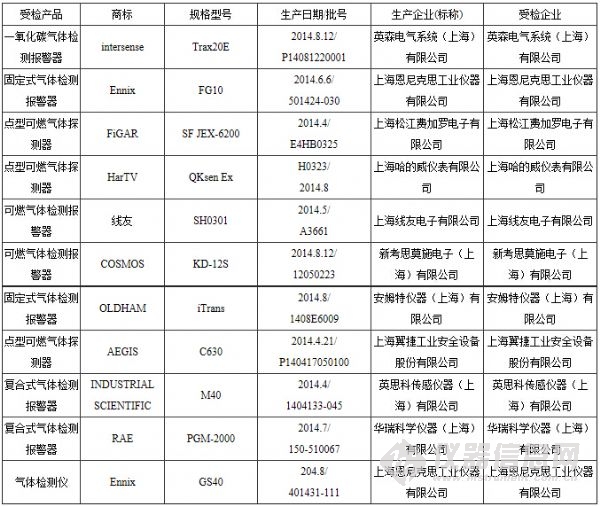 2014年氣體檢測(報警)儀質(zhì)量監(jiān)督抽查所檢項目符合相關(guān)標準的產(chǎn)品
