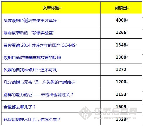 第七屆科學儀器網(wǎng)絡原創(chuàng)作品大獎賽(以下簡稱:原創(chuàng)大賽)7月1日火熱開賽,開賽以來大賽受到全國各地網(wǎng)友、科學儀器行業(yè)工作者地積極響應與熱情參與,截至目前共征集到近800篇原創(chuàng)作品,其中也涌現(xiàn)出很多優(yōu)秀的原創(chuàng)文章。此外,本屆原創(chuàng)大賽還首次運用微信平臺對原創(chuàng)文章進行了分享,11月期間共推送了16篇文章,瀏覽量20000余次。具體推送及獲獎文章請見下表: